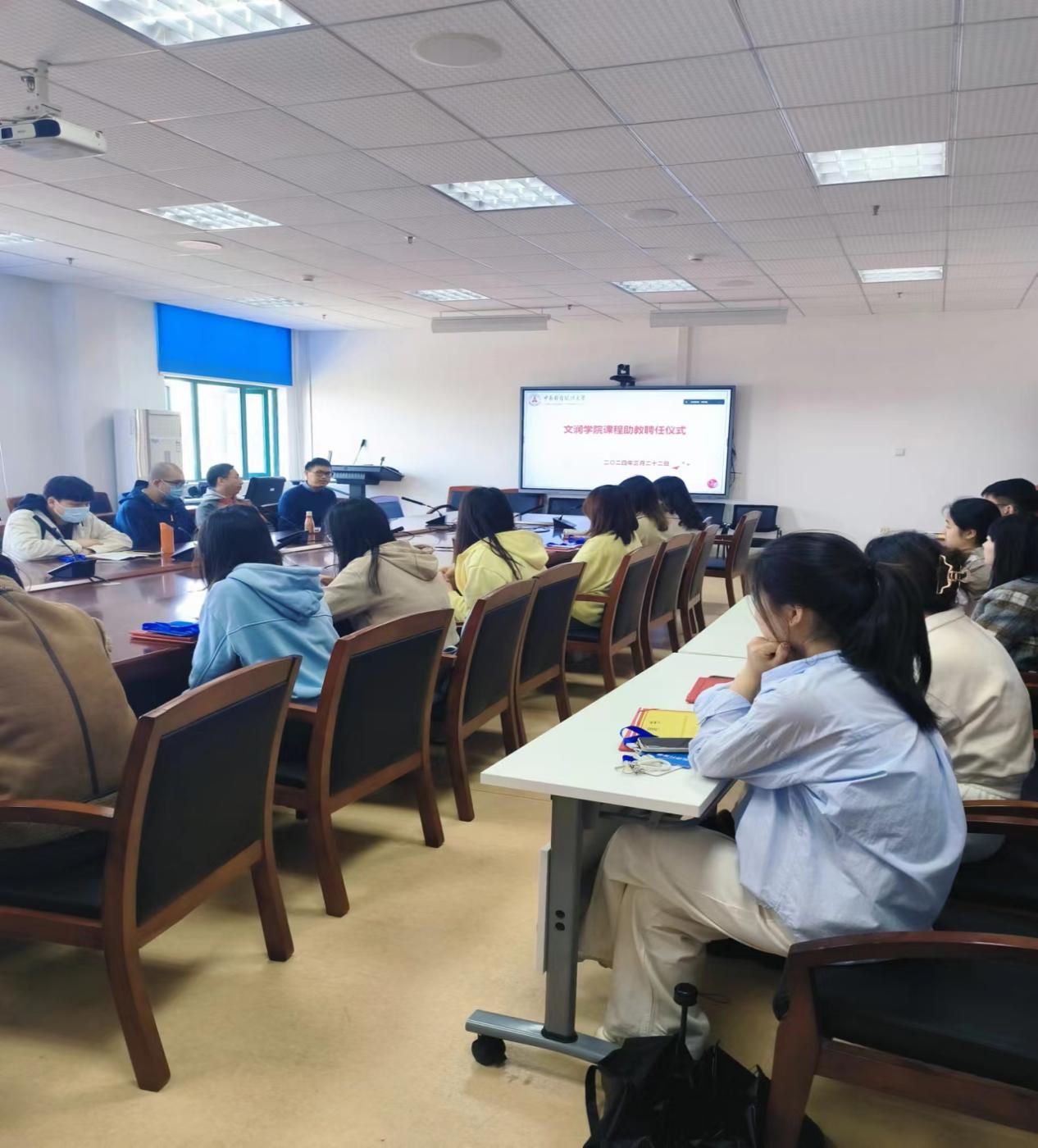 3月22日上午,文澜学院春季学期本科课程助教聘任仪式在文澴楼711会议室举行,文澜学院教学副院长、文澜学院本科教学指导委员会委员、行政助理等相关老师,以及16名受聘助教参加了此次会议。