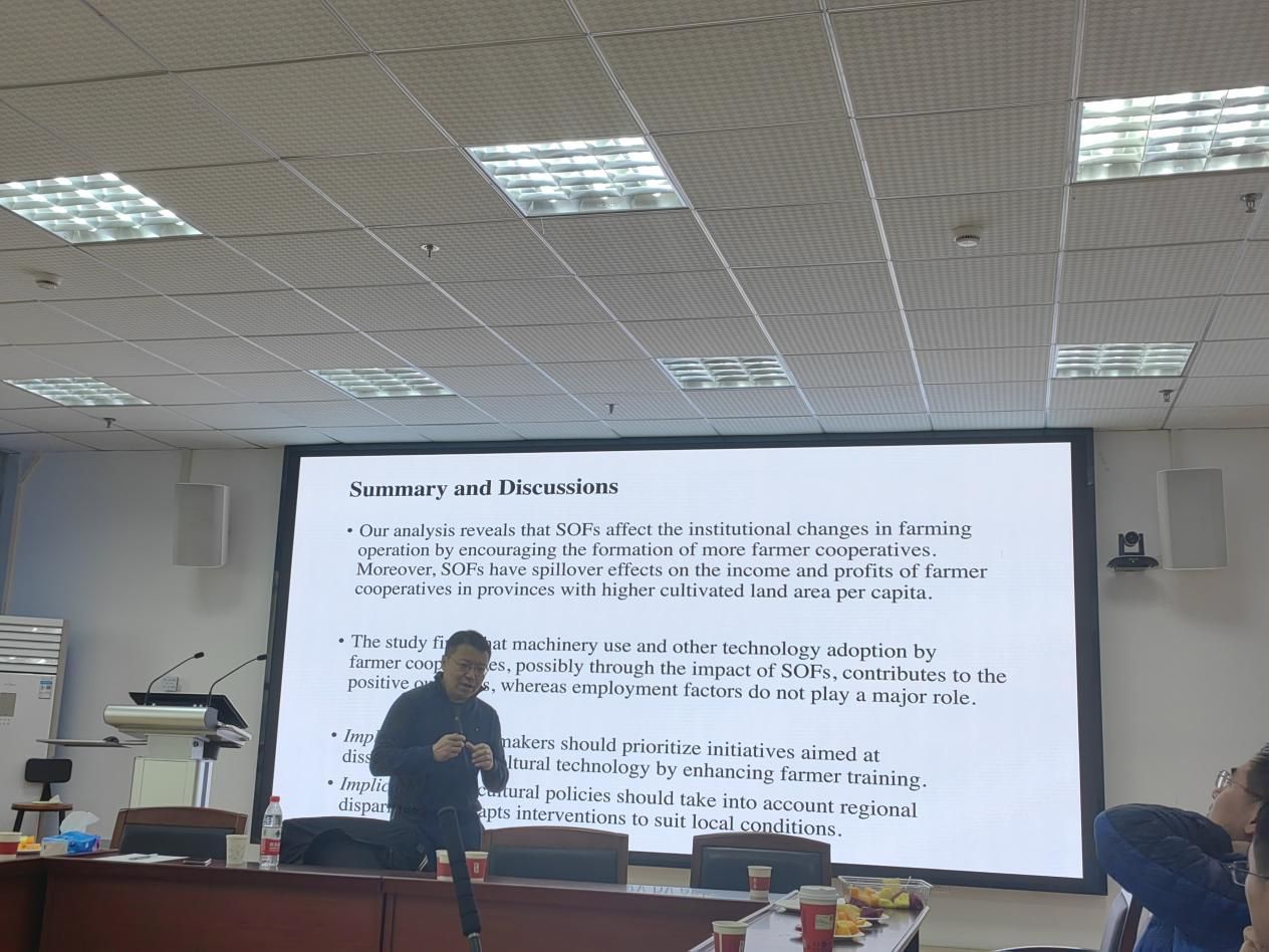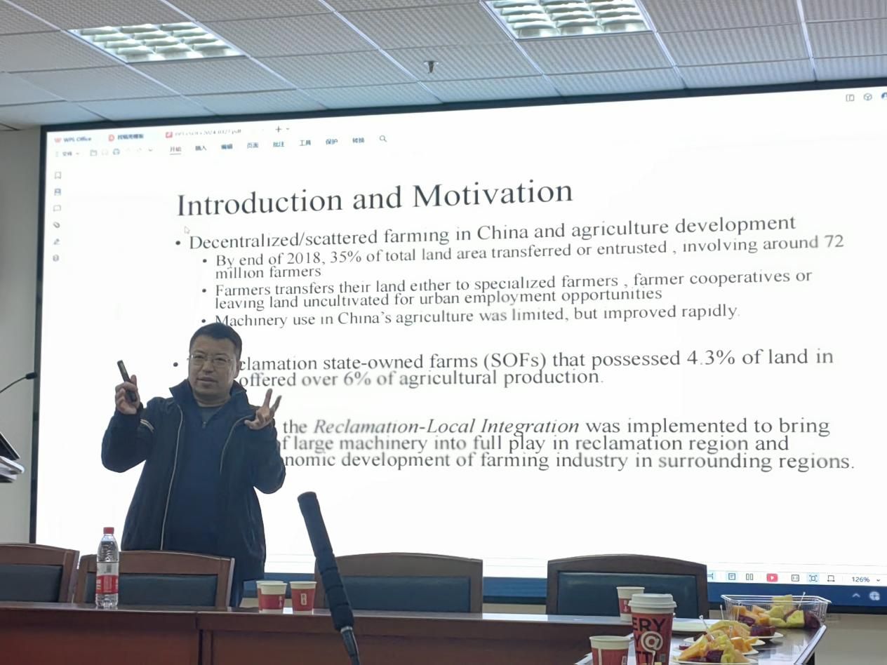 首先,张吉鹏教授通过介绍东北实地调研经历引入本次学术讲座的主题。在我国,规模较大的国有农场通常资本运营能力较强,更可能产生规模经济效益,同时带动周边农民合作社的发展,产生溢出效应。