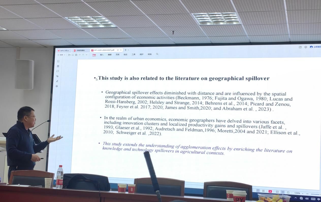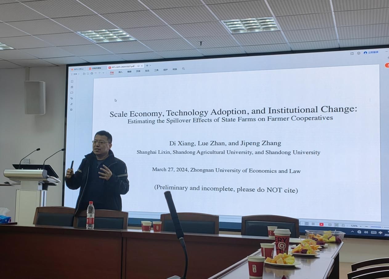 本次讲座有幸邀请到了山东大学经济学院张吉鹏教授,做了主题为“Farming Operations, Scale Economy, and Agricultural Productivity: The Spillover Effects of Corporate Farms on Farmer Cooperatives”的学术报告。讲座由文澜学院荣昭教授主持,学院部分教师及研究生共同参与了本次学术讲座。