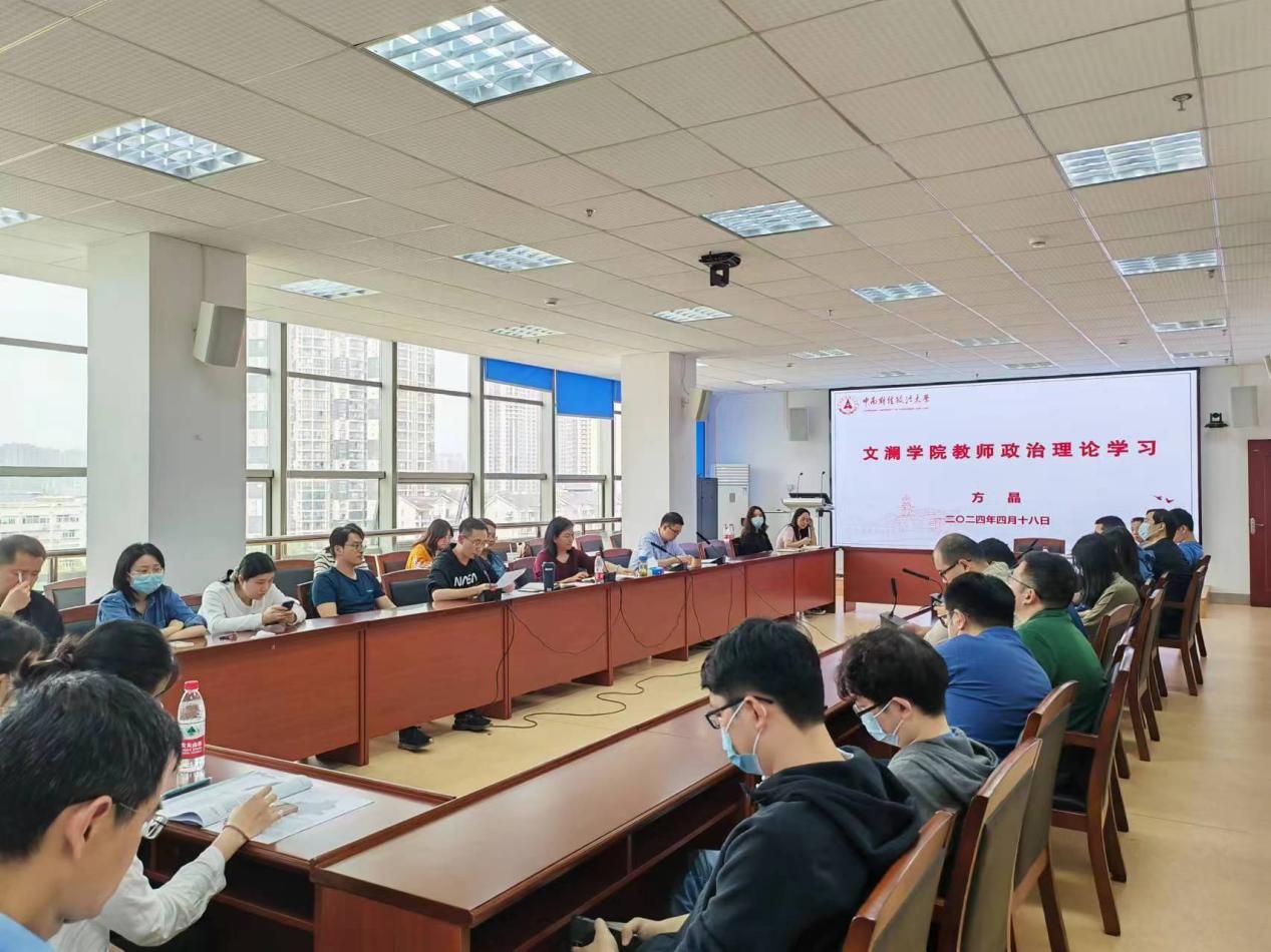 2024年4月18日下午,文澜学院全体教师在文澴楼709召开文澜学院本科教育教学审核评估动员部署会。