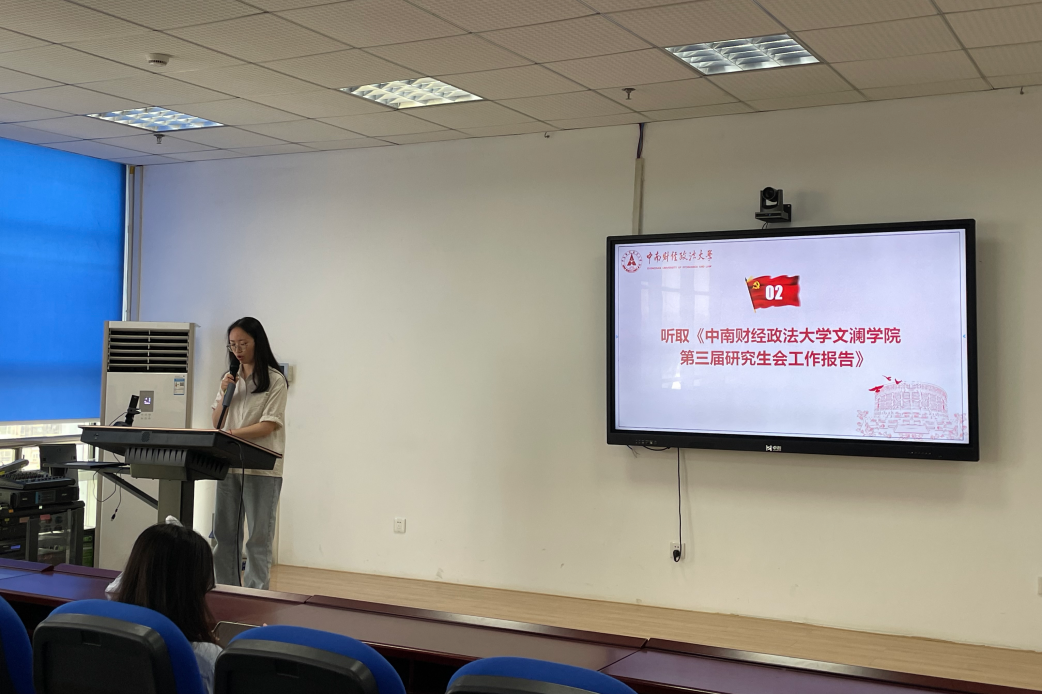 会议首先由第三届研究生会执行主席靳亚柯宣读《米兰电竞·(中国区)文澜学院第三届研究生会工作报告》,报告中详细展现了研会过去一年在制度建设、思想建设、学术活动、文体活动以及生活服务等各方面工作成果并对研会未来发展提出相关建议。