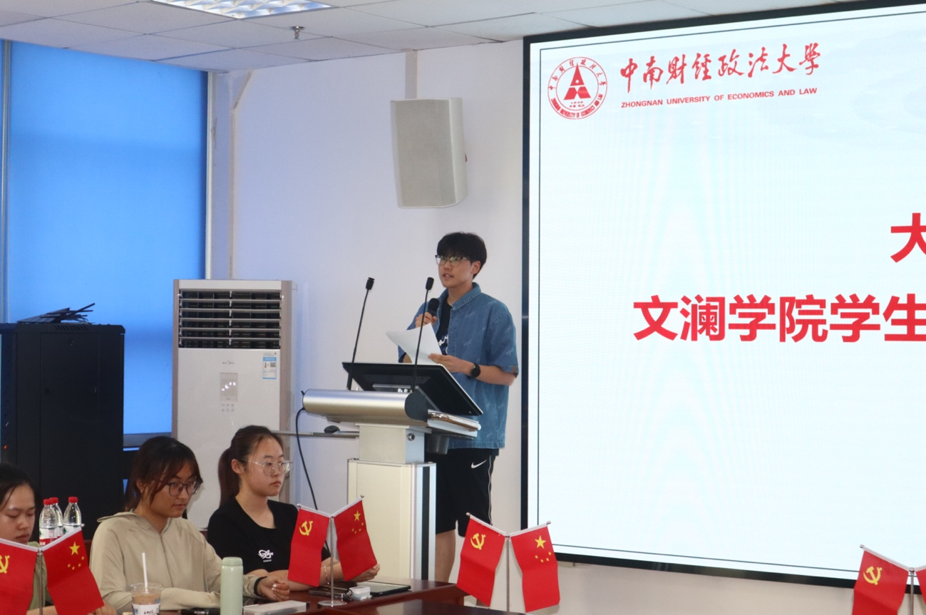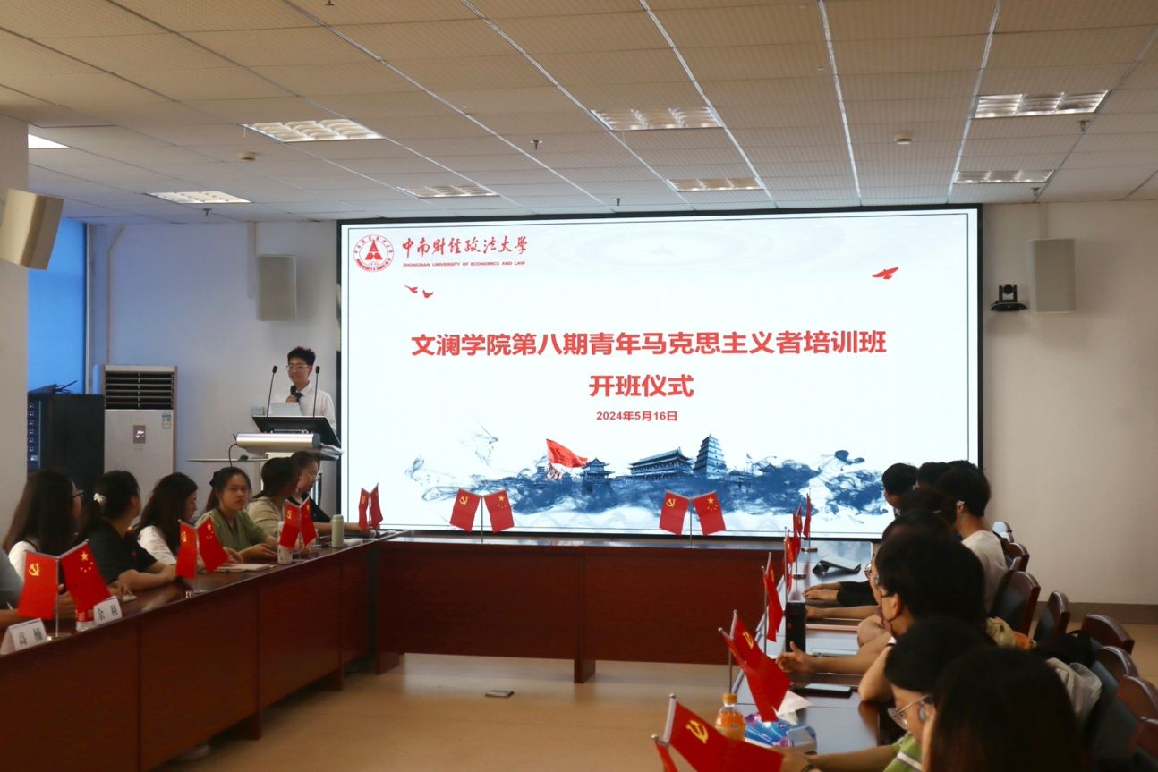 (通讯员/吴骏熙)为深入学习贯彻习近平新时代中国特色社会主义思想,积极落实我校《关于深入开展党纪学习教育的实施方案》,努力培养让党放心、爱国奉献、担当民族复兴重任的时代新人,5月16日下午3点15分,文澜学院在文澴楼709会议室举办第八期青年马克思主义者培训班开班仪式暨党纪学习主题教育,中南财经政法大学高等教育研究中心郭华桥老师受邀为学员们授课。文澜学院党委书记彭晓燕、副院长高楠、学生工作办公室主任余利、团委书记戴士崴出席本次活动,院团委组织部耿康博同学主持本次活动。