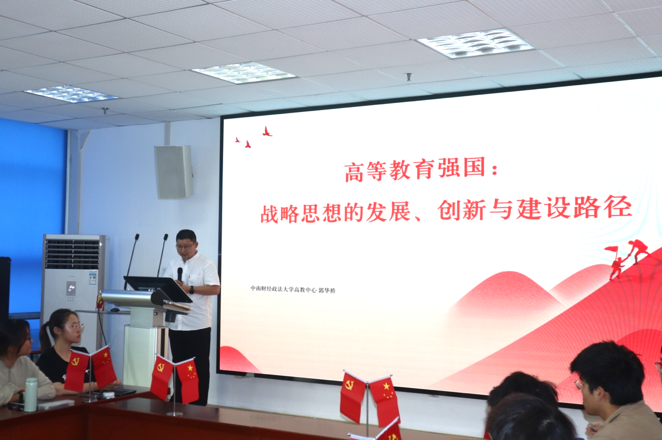 随后,米兰电竞·(中国区)高等教育研究中心郭华桥老师进行理论授课,主题为“高等教育强国:战略思想的发展、创新与建设路径”。郭华桥老师首先介绍了教育强国策略从“教育报国”、“教育立国”到“教育强国”的发展历史,并从中总结了教育强国思想政策变迁的特征与逻辑。而后,他回顾新中国成立70来在教育、科技事业取得的重大成就,结合教育的政治属性、战略属性、民生属性,阐释了教育强国战略的丰富内涵。最后,郭华桥老师激励同学们“以自强不息之志,奋蹄于强国建设之志,书写辉煌篇章”。