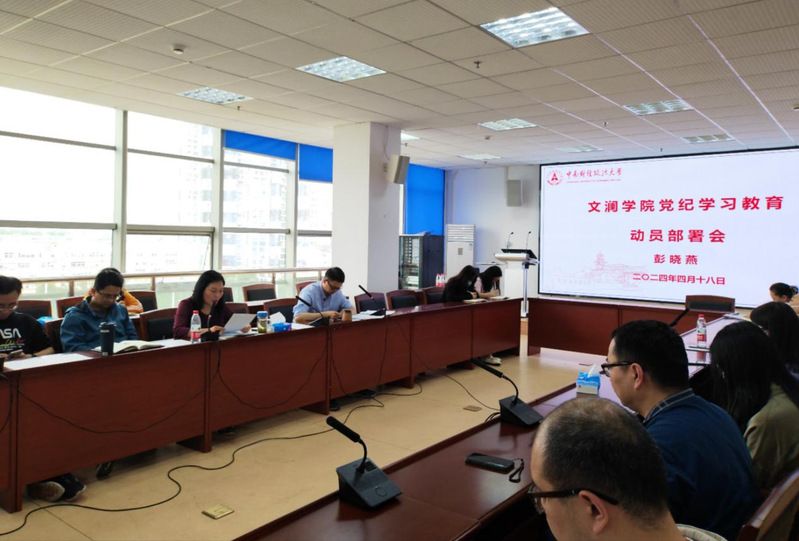 (通讯员 孙思奇 祖宝璐)为进一步推进党的纪律建设,落实全面从严治党要求,文澜学院于4月18日下午在文澴楼709会议室召开了党纪学习教育动员部署大会。此次会议由学院党委书记彭晓燕同志主持,全体教职工参加会议。
