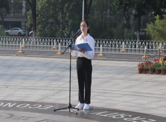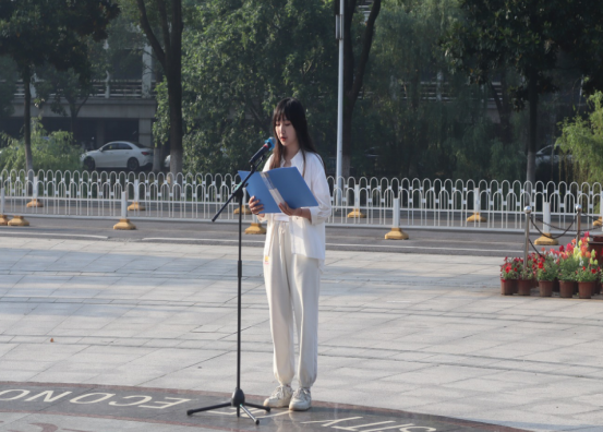 接着,22级本科生王孟君同学进行国旗下讲话。在立夏的节气上,王同学以立夏节起义(也称商南起义)中青年才俊的英勇事迹激励同学们为党和人民的事业朝乾夕惕、奋楫笃行,鼓舞同学们立夏这个充满生机、欣欣向荣的时节踔厉奋发,勇敢追梦。