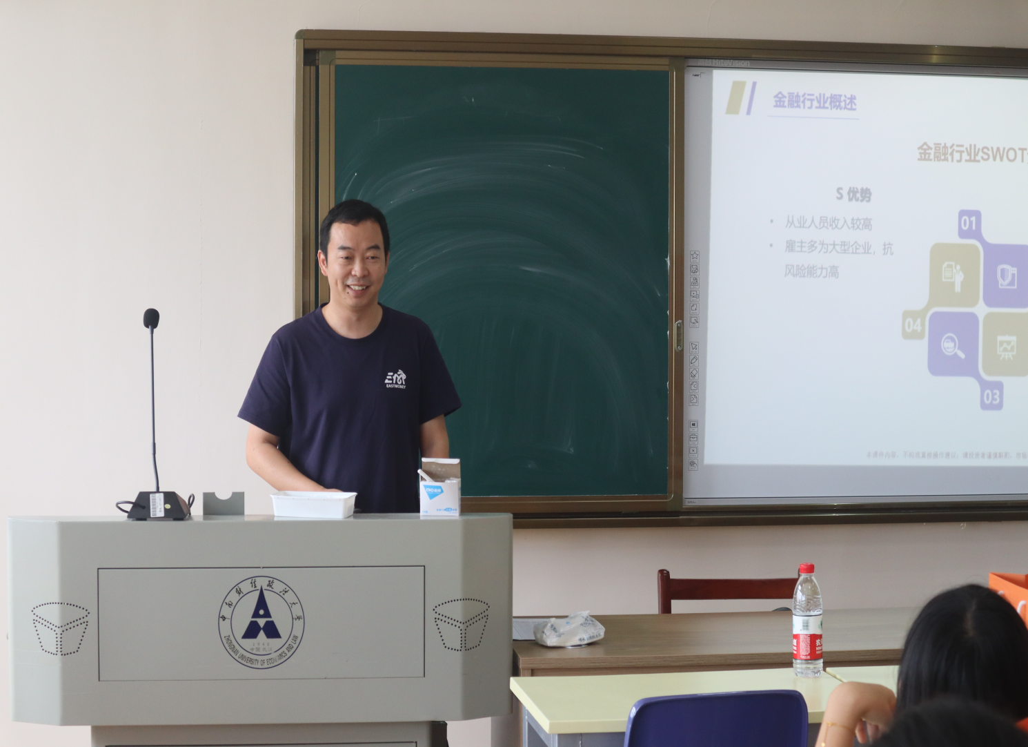 接着东方财富证券湖北分公司综合管理总监张凯先生以“深入金融行业,完善职业规划”为主题,向同学们介绍了金融行业和金融子行业概述。张总监用SWOT分析帮助大家从整体上了解了金融行业,并详细介绍了经济金融专业的就业情况,大大加深了同学们对于金融行业的了解和认知。