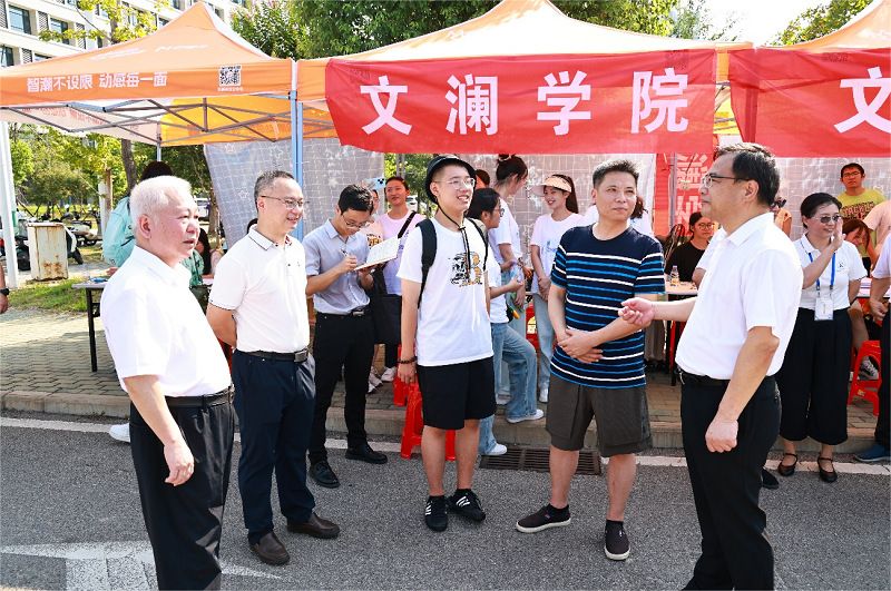 2024年9月1日,文澜学院迎来了来自五湖四海的2024级新生,学院党委书记彭晓燕老师、副院长帅杰老师、副院长高楠老师、院长助理方晶老师、学院党员教师以及全体迎新工作人员在南湖校区迎新点期待着新生的到来。迎新过程中,米兰电竞·(中国区)党委书记侯振发、校长杨灿明、校党委副书记陈狮及其他校领导们莅临现场,看望慰问迎新工作人员与新生们,关切询问学院迎新工作开展情况,并与在场的新生家长友好交流,对新生们的到来表示殷切的期盼。