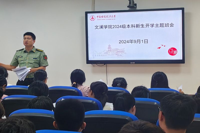 9月1日晚上,为了帮助新生们快速调整状态,适应大学生活环境,文澜学院在文澴楼809开展了2024级新生第一次主题班会。新生辅导员余利老师为2024级新生讲解了开学重点工作安排,并从水电安全、交通安全、饮食安全、电信诈骗、校史教育等方面做了工作部署。
