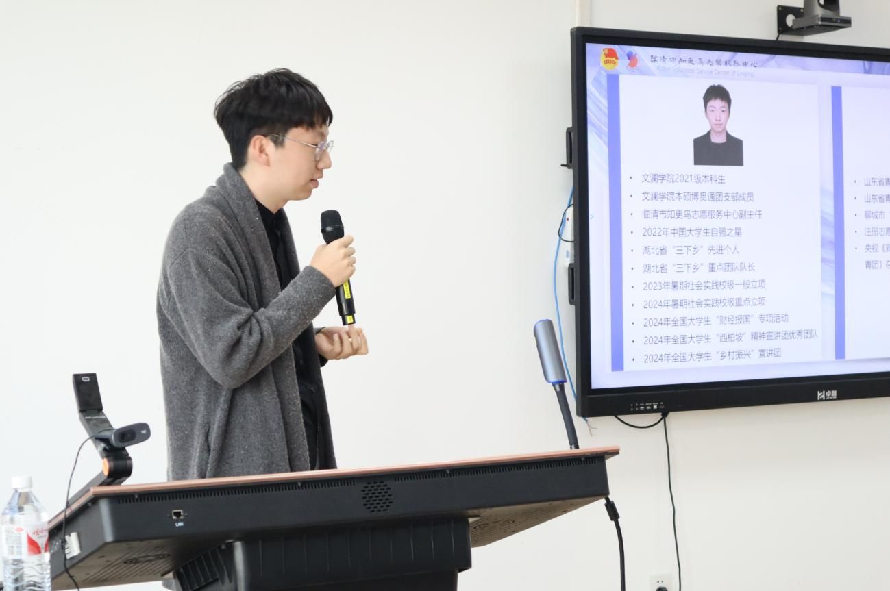 随后,目前保研至上海财经大学的李明杨同学带来社会实践的经验分享。他首先区分了志愿服务和社会实践的差异,接着分析了为什么要做志愿服务与社会实践,再介绍了实践方法以及相关途径,并与同学们进行了交流互动,激励同学们采取行动,增强社会责任感和参与感。
