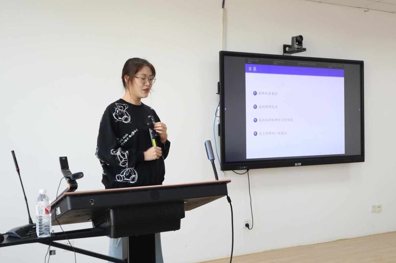 第一位进行分享的是丁小原同学。丁小原同学目前已保研至复旦大学经济学院攻读应用经济学博士学位,本次她就科研的重要性、个人科研经历、本科科研学习时间线以及关于科研的建议四个方面进行了分享。在分享过程中,丁小原同学着重强调了科研能力对保研的关键作用,以及与老师积极交流、平衡科研和日常学习的重要性,为在座同学提供了宝贵经验。