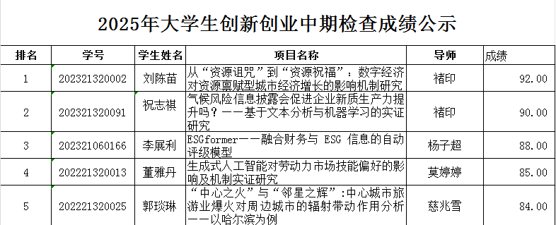 此次评审不涉及国家级、省级、校级项目指标分配,只公布最终分数和排名。请项目组负责人及时关注后续通知。如有同学对以上结果有异议,请在2025年4月26日下午4点前向学院反映。联系人:孙老师 027-88385133