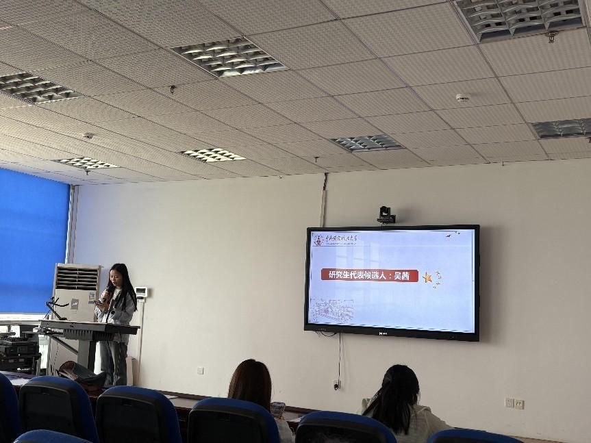 大会审议并通过了文澜学院第五次研究生大会的三项重要提名名单,随后进入候选人陈述环节,主席团候选人李怡、张凤杰、凌思钰和研究生代表候选人赵丽丽、陈思逾、卢鹏、吴茜依次登台发表竞选演说。