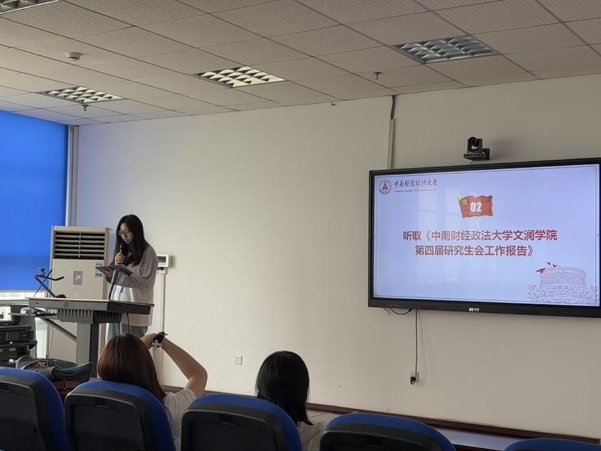 文澜学院第四届研究生会执行主席谭祎玮首先向大会作年度工作报告。该报告系统回顾了过去一年研会在多个领域的工作成效,报告在总结成绩的同时,也对研究生会未来的发展方向提出了建设性意见。
