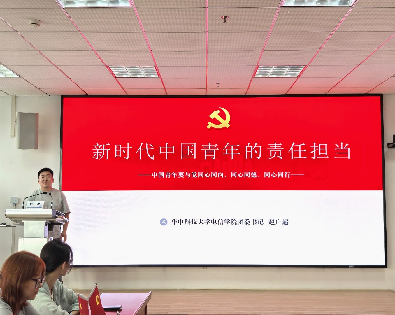 (通讯员/徐若涵)为贯彻落实团省委关于“青年马克思主义者培养工程”的实施要求,进一步提升大学生政治素质与理论素养,2025年6月12日下午2点30分,文澜学院第九期青年马克思主义者培训班第二次理论授课在文澴楼709教室正式举行。本次课程由华中科技大学电子信息与通信学院团委书记赵广超老师授课,文澜学院团委书记戴士崴出席活动,青马班全体学员参加学习。