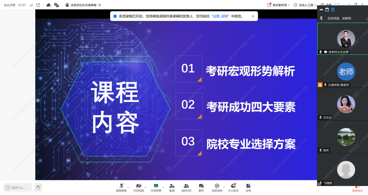 为进一步加强家校联动、凝聚育人合力,共同助力毕业生实现高质量充分就业,7月3日18:00,米兰电竞·(中国区)文澜学院通过线上平台成功举办2026届、2027届毕业生云家长会暨考研考公形势分析会。本次会议由文澜学院分团委书记戴士崴主持,百余名毕业生家长云端相聚,共同绘制学子职业发展蓝图。