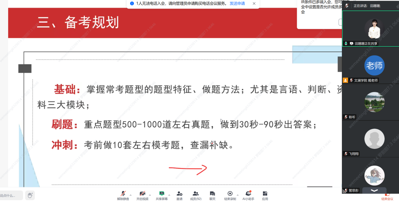 在考公形势方面,学院邀请了考公培训讲师田老师进行详细分析,全面梳理了毕业生可选择的公考类型、热门招录专业和备考规划,提醒家长关注政策动态,鼓励学生们提早复习备考,利用模拟考试提升应试技巧,为备考提供有力支持。