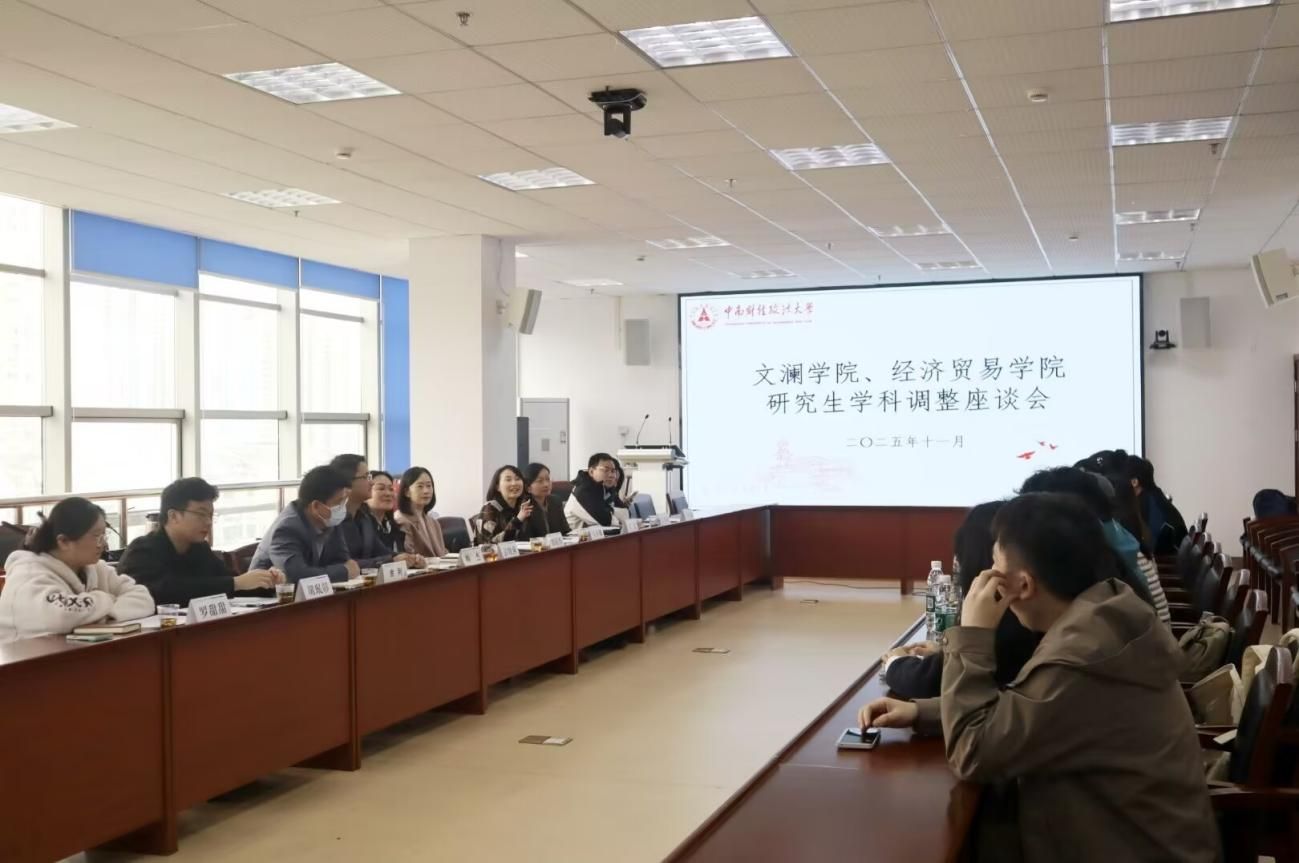(通讯员/陈子豪、周思琪、胡珉彰)为落实学校整体学科布局优化升级战略,11月12日上午10点,文澜学院、经济贸易学院研究生学科调整座谈会在文澴楼709会议室举行。参加本次座谈会的有经济贸易学院党委书记刘筱彤、副院长吴英娜、党委副书记左思、文澜学院党委书记彭晓燕、副院长帅杰、两学院辅导员代表和行政人员代表以及各年级研究生学生代表,本次会议由帅杰主持。