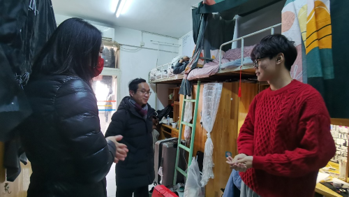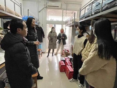 (通讯员魏则锦)1月15日正逢南方农历小年,在瑞雪兆丰年、飞雪迎春到的节日氛围中,中南大校园里暖意融融,工商管理学院院长吴海涛、工商管理学院党委副书记李芳、本科生辅导员水晶晶、刘筱佳前往南湖校区各宿舍区寝室楼走访慰问了春节留校过年的学生,送去了关怀与祝福。