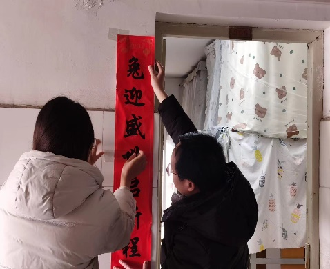 最后,院领导老师们同留校学生一道给宿舍布置上春联,祝愿同学们兔年鸿运、春节快乐,在新一年里,行而不辍,一往无前,勇担新时代中南大人的历史使命。寝室里充满了春节的气氛,让留校过年的中南大学子感到暖心又温馨。受慰问的留校学生对学校的深厚关爱表示感谢。他们纷纷表示,一定牢记学校领导的殷殷嘱咐,把学校的关心关爱转化为提升自我的强大动力,不负时代,不负华年。
