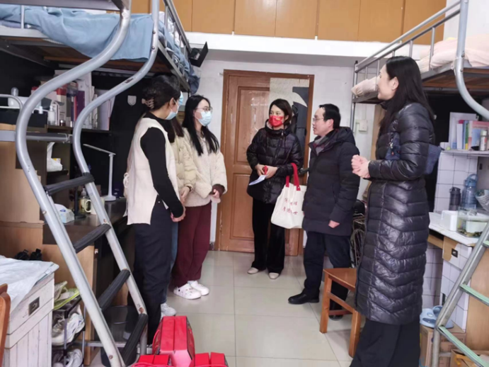 学院领导老师们来到学生宿舍为留校学生送上了学院特别准备的春节慰问礼包和新春的美好祝福。“同学们都来自哪里?”“今年为什么留校过年?”“寒假期间,生活和学习上还有没有什么困难?”“要记得时刻与家人保持联系。”……吴海涛院长与同学们亲切交谈,详细询问了同学们各自家乡家人情况和在校学习、生活状况,倾听学生需求,了解大家留校安排。