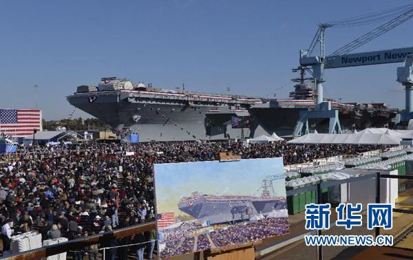 美军最新一艘超级航空母舰“杰拉尔德·福特”号2013年11月9日在弗吉尼亚州纽波特纽斯亨廷顿英戈尔斯公司造船厂举行正式命名仪式,标志着这艘航母下水投入使用。