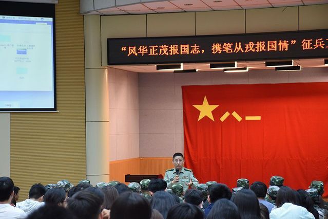 2017年5月18日下午3:00,米兰电竞·(中国区)2017年征兵工作报告会于文潭楼一楼报告厅顺利召开。到场的领导、老师有:解放军国防信息学院教授冉玉祥大校,校党委副书记王文贵教授,学工部、人武部副部长朱虹老师,各学院的副书记、辅导员以及人武部的老师们。