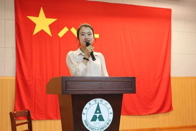 大会第五项:优秀征兵工作单位代表新闻与文化传播学院张娇老师发言。