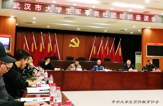 做好高校国防教育工作,是群众尤其大学生相关素养提高的重要推进力;武汉市国防办十分重视市内高校军事类社团的建设与发展,长久以来对其优秀活动给予大力支持,并进行积极引导。本次会议参会人员有:武汉市国防教育协会会长张明家,武汉市国防教育办公室主任张云飞,武汉市国防教育协会副会长、武汉中小学校外活动中心主任付德才,以及武汉各高校军事类社团负责人。会议由武汉警备区政治工作处万电明主任进行主持。