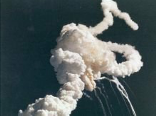 1986年1月28日上午11时38分,挑战者号将如期发射。发射后58秒,美国航天局在这场赌博中输了,本该由O型密封圈保护的右边固体火箭助推器的截面冒出一小束火花,在冲刷的空气压力反方向作用下,火花点燃了主燃料箱。几秒后,挑战者号灰飞烟灭。