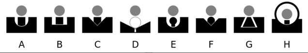 缺口照门有各种各样的形式,光从形状上说,AK照门是U形缺口(A),还有V形缺口(C),现代手枪常用的派垂吉缺口(Patridge,缺口是方的,B),用来狩猎大型动物的express缺口(D),还有梯形缺口(G)。