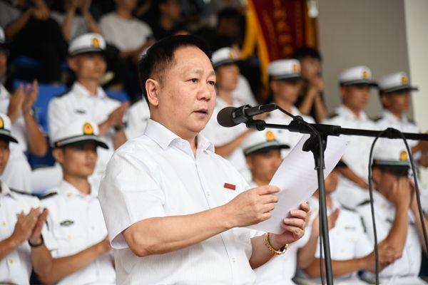 校长杨灿明代表学校党委、行政向中国人民解放军海军工程大学领导和教官以及为此次军训付出辛勤劳动的各部门和带训干部表示衷心感谢,并向圆满完成军训的同学们表示热烈祝贺。他表示,看到同学们以饱满的精神、昂扬的斗志走过主席台,看到同学们的身上体现了新时代军人的气质与风范,展现了国防教育汇聚起的强大向心力,他感到十分欣慰。并强调,国防对于一个国家来说十分重要,而军训是大学生参加国防教育的重要组成部分。“我们的学校诞生于革命战争年代,70年来都是在服务国家发展中成长起来的,这是中南大的初心和使命,也是全体中南大学子‘学在中南,心在天下’的使命与担当。”他希望,同学们在今后的学习生活中将人民解放军的优良传统和时代精神发扬光大;希望同学们弘扬“博文明理、厚德济世”的校训精神,将军训作为起点,以更加热情饱满、更加昂扬进取的精神风貌投入到紧张而富有意义的大学生活中去;希望中南大的学子,力争成长为报国有志、建国有才、效国有力的新时期高素质人才,为中华民族伟大复兴而努力!最后,他祝愿大家中秋节日快乐,祝愿同学们勇攀高峰,祝愿学校生机勃勃,再谱华章!