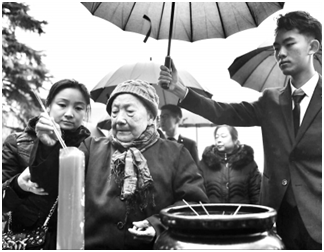 夏淑琴为家人的名字描了又描,边描边说:“外公外婆、爸爸妈妈、姐姐和小妹,请安息吧!希望你们那里的冬天少一点寒冷!”她说自己虽然不认识字,但家人名字的一笔一画都记得。她一再重复,虽然年纪大了身体不如以前,但只要身体允许就一定要来参加祭奠,她希望世界和平,悲剧永不发生。