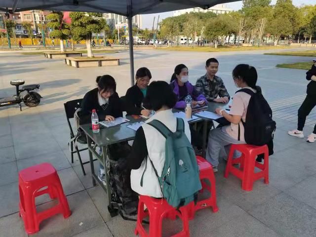 图为退役师兄师姐为有意愿参军的同学做答疑工作