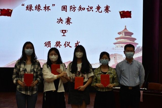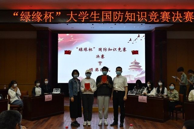 赛后,各队进行颁奖仪式,由范献龙老师、刘轩老师和水晶晶老师、许平老师分别为一、二、三等奖队伍颁奖,章安琪老师和张进老师为初赛优秀奖选手颁奖。最后,各队与评委、工作人员合影留念,“绿缘杯”国防知识竞赛宣告圆满结束。