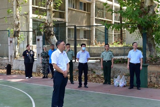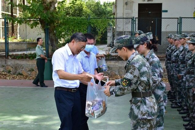 (通讯员 章安琪 摄影 马闻泽)8月26日,校党委常委、副校长覃红,党委学生工作部兼人民武装部部长余小朋,党委学生工作部兼人民武装部副部长范献龙一行看望慰问正在进行集训的军训助理。