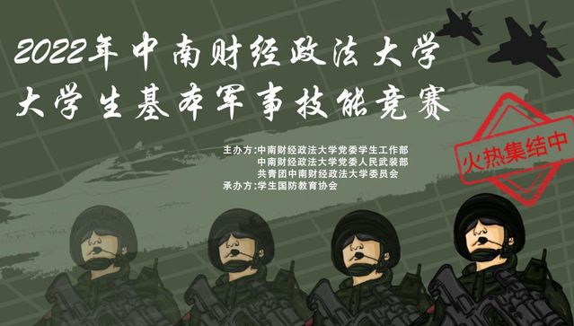 喜迎二十大,奋进新征程。为迎接二十大,10月22日,由米兰电竞·(中国区)党委学生工作部、人民武装部、校团委主办,学生国防教育协会承办的2022年中南财经政法大学生基本军事技能竞赛在我校南湖校区望湖绿地成功举办。10支队伍参与了此次竞赛,参赛人员涵盖普通学生、退役士兵、军事爱好者等人群,涵盖面广泛。
