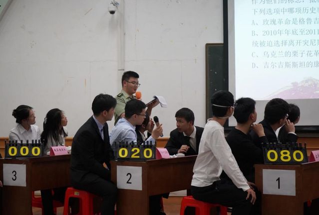 比赛过程中各队选手们拼尽全力,反应迅速,展示出自己丰富的国防知识储备,现场气氛紧张激烈。