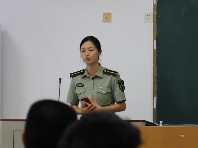大会内容第三项,由胡万松老师发表讲话,胡老师表示,今年军训难度较大,但大家的认真负责使军训工作进行得十分顺利,百团大战在即,要继续做好招新工作,把军队中的优良作风带进学校,保持对国防工作的关注和热爱。