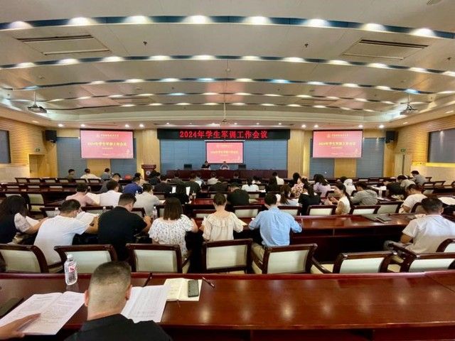 (学生通讯员 邱雨洁)8月30日上午,我校在中原楼七楼会议室召开2024年学生军训工作会议,校党委副书记陈狮,相关职能部门驻训干部、各学院分管本科学生工作负责和各学院带训老师共计70人参加会议。会议由党委学生工作部、人民武装部部长王前哨主持。