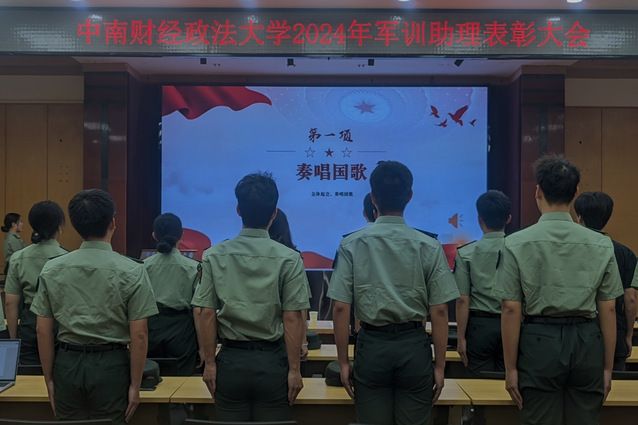 大会第五项,到场老师为全体军训助理颁发荣誉证书,全体参会人员合影留念。