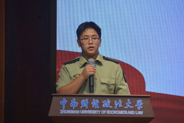 大会第二项,军训助理负责人赵家斌发言,他向带队老师以及海军工程大学的教官们表示衷心的感谢,高度赞扬军训助理队伍默默付出的奉献精神,并对学生国防教育协会未来发展进行展望。