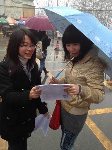三月十五号虽然下起小雨,但却丝毫没有动摇大家志愿者活动的决心。信管1001班同学分成三支分队。细密雨丝中,同学们开始发放传单,并耐心讲解传单内容。活动传单由班级同学精心设计,对于如何保养笔记本、如何解决使用笔记本过程中可能出现的问题作了详细说明,并介绍了一些常用软件的使用技巧,以帮助同学们解决一些生活中的电脑小问题。接受传单的同学或驻足凝听,或微笑致谢。此外,信管1001班的班级人人和班级博客上也贴出相关文章,介绍电脑知识,供大家参阅。