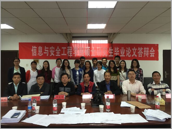 2016年5月22日,信息与安全工程学院举行2016届研究生毕业论文答辩会。我院环境管理、安全管理、管理信息系统、信息经济与IT管理、信息安全管理和计算机科学与技术六个学硕专业以及计算机技术与工程专硕专业的论文指导教师和2016届研究生毕业生在文永楼参加了论文答辩。同时2014、2015级部分学生参与了旁听。参加本次毕业论文答辩的共计39名毕业生,共分为6个答辩小组,上午和下午各三组。
