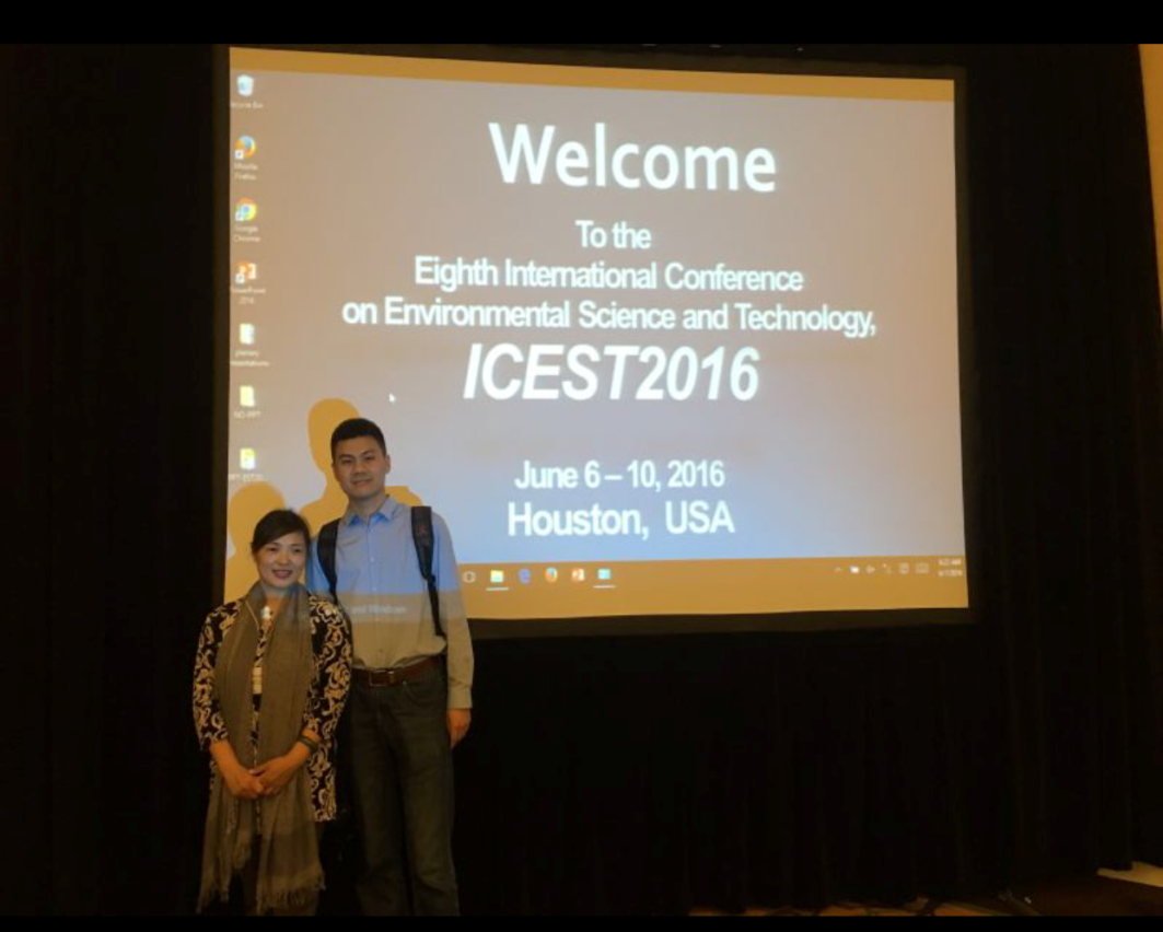由于访问日程安排较紧,访问伊利诺理工大学斯图尔特商学院后两人立即转站休斯顿,于6月7日到6月11日应美国国家科学院邀请参加第八届国家环境科学与工程大会International Conference On Environmental Science and Technology,就以“Heavy metals in road dust from Xiandao District, China: Characteristics, health risk assessment and integrated source identification”题目做了主题报告,并和Air Quality Assessment分组的同研究领域各国专家进行了深入的交流沟通。