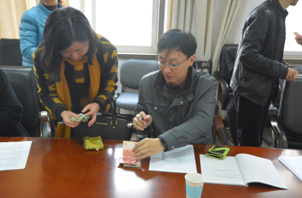 最后,由胡景浩书记收取党费,各位党员积极缴纳,无一漏缺。胡景浩书记也要求党支部成员会后认真观看警示片《永远在路上》,并提交一份观后感。