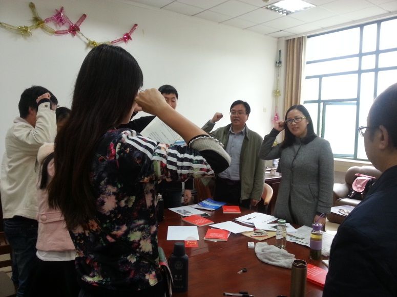 会议开始,全体党员起立并举起右手,重温入党誓词,表达了“做合格党员”的决心和愿望。