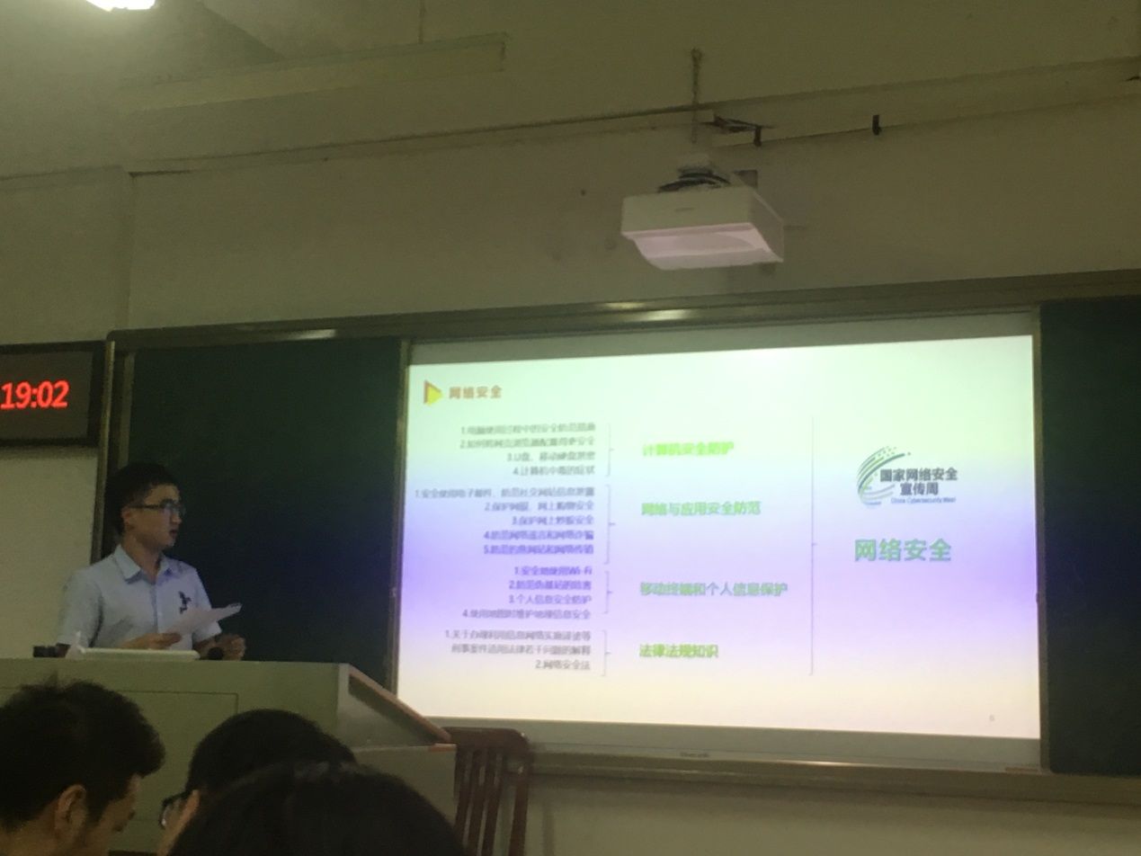 9月18日至20日,我院研会成员获得任课教师允许后,利用课间时间在文添楼多个教室为不同学院的研究生同学播放了网络安全宣传视频,并做简要讲解,号召更多的同学了解并参与到网络安全宣传周的活动中来。现场气氛活跃,大家观看过程中纷纷表示非常受益。