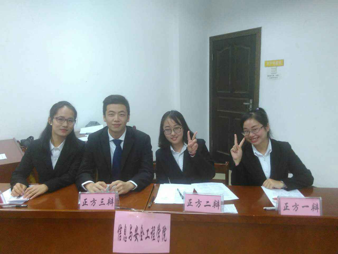 担任正方的是信息与安全工程学院代表队,担任反方的是统计与数学学院代表队。本场辩论赛的主题是:公立大学接受商业冠名利大于弊还是弊大于利。在经过一场激烈的唇枪舌战后,最终我院辩论队略胜一筹,拿下最终的胜利!