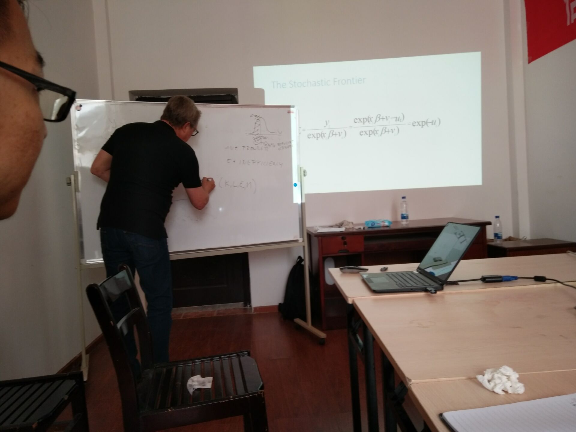 Jerry Blomberg和Bo Jonsson教授采用多媒体互动教学模式,进行了一系列“数据包络分析”主题讲座。本次讲座主要围绕经济学中常用的数学方法数据包络分析(DEA模型)展开,并通过使用DEA软件分析一些企业投入产出的效率。讲座共分为七次:第一次课内容包括介绍什么是效率测度、数据包络分析的基础知识、技术效率、配置效率和规模效率的测度、来源于商业分析和公共组织的一些应用实例;第二次课内容包括DEA软件的运行、完成作业处理数据;第三次课的内容是展示并讨论和处理数据的结果;第四次讲座主要涉及的内容是如何区分有效单位,引入超效率的概念,介绍超效率模型;第五次讲座的内容为生产力的改变,时间序列和与马姆奎斯特指数结合的数据包络分析模型、并布置作业完成对数据集的处理和完成练习;第六次讲座内容包括展示并讨论练习和处理数据集的结果;第七次讲座内容包括对课程的总结并对同学们提出的问题进行答疑并就如何将环境污染同数据包络分析模型结合起来与大家展开探讨。