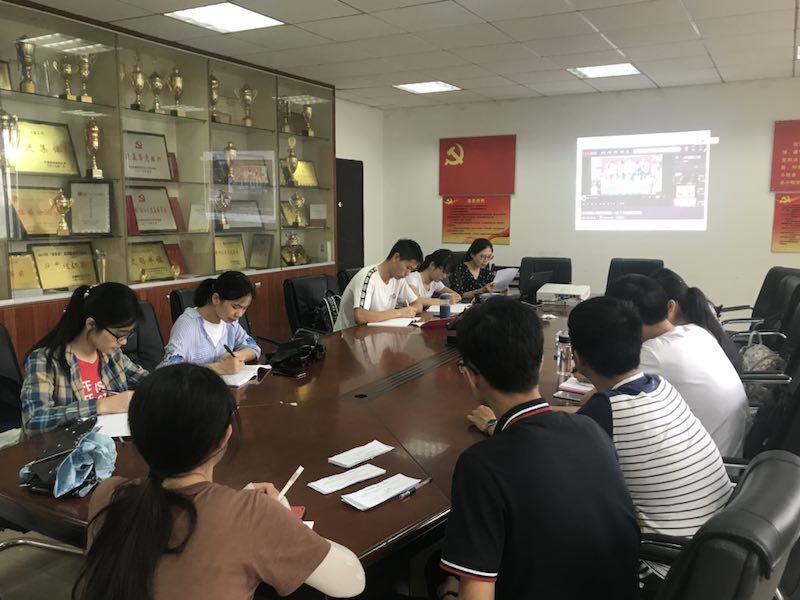 2018年7月9日下午四点半,信息与安全工程学院2017级研究生党支部在文永楼203会议室举行了7月支部主题党日活动。研究生辅导员兼研究生党支部书记付慧娟老师以及全体学生党员参加了此次党日活动。本次会议由学生党支部副支书周秋怡主持。